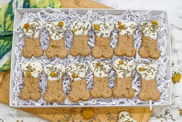 Calming Dog Treats Gift Box | Comforting Organic Lavender & Chamomile Pet Training | Anxiety support for Dogs | Functional Treats for Dogs