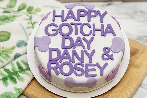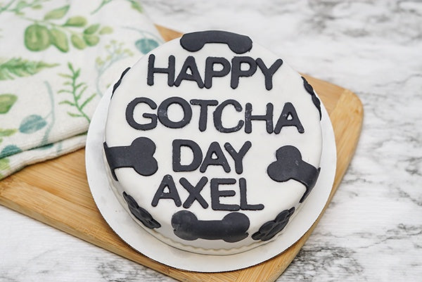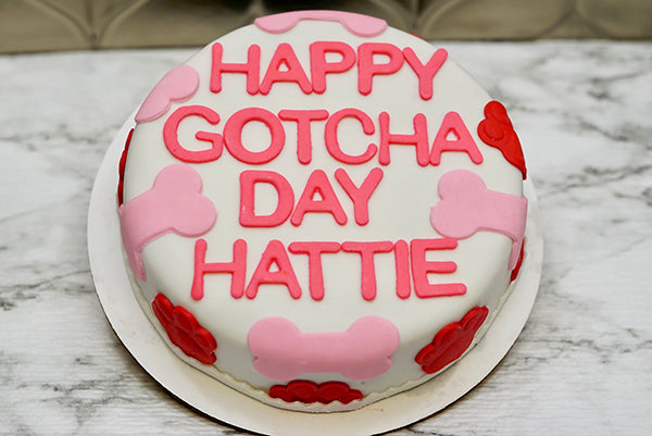 Celebrate your furry friend's gotcha day with a personalized cake with your dogs name. The perfect pet gift for any puppy party!