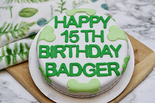 If you have concerns about feeding your dog fondant, know that it is safe for dogs in small amounts. This is a once a year special treat and not for everyday feeding. If you don't want your pup to consume it it easily peels off revealing a super healthy cake underneath. Be sure to take all your pics for IG before removing ;)
